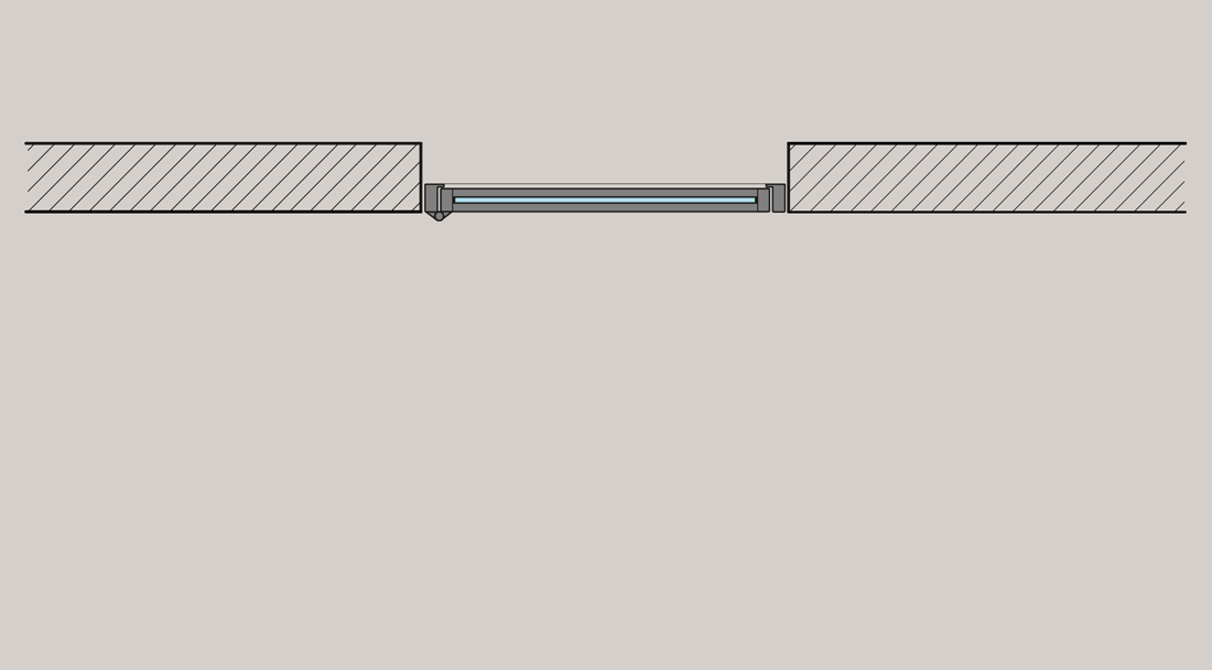 Jak już wspominaliśmy, drzwi loftowe ze skrzydłem na zawiasach dostarczane są w zestawie ze stalową ościeżnicą. Ościeżnica ta w przypadku naszego systemu ma 47 mm głębokości. Z tego powodu po zainstalowaniu drzwi loftowych widoczna pozostaje część otworu drzwiowego. Jest to zupełnie inne rozwiązanie, niż w przypadku standardowych drzwi płycinowych instalowanych w regulowanej ościeżnicy, która zakrywa całą grubość ściany.